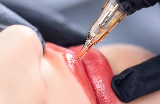 リップアートメイクは、極細の針を使用して、唇のごく浅い層に色素を入れる施術です。