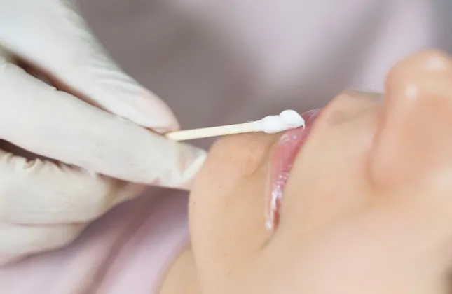 施術前に唇全体へ塗布し、15〜20分ほどで効果が現れます。